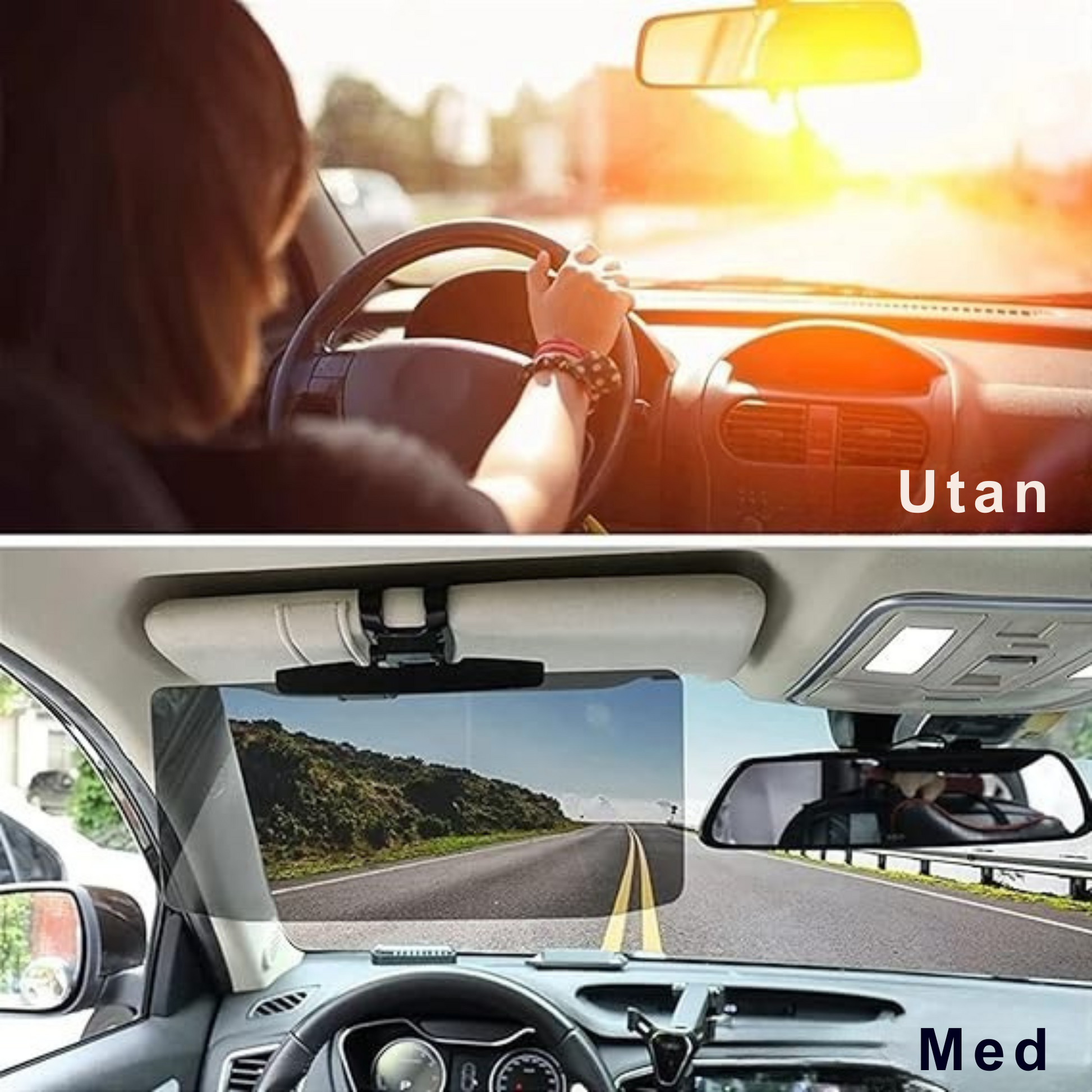 Känner du igen dig? Solen står lågt och lyser rakt in i ögonen, men solskärmen når inte tillräckligt långt för att ge något skydd. Vägen försvinner i ett bländande sken, och hur mycket du än justerar solskärmen hjälper det inte.